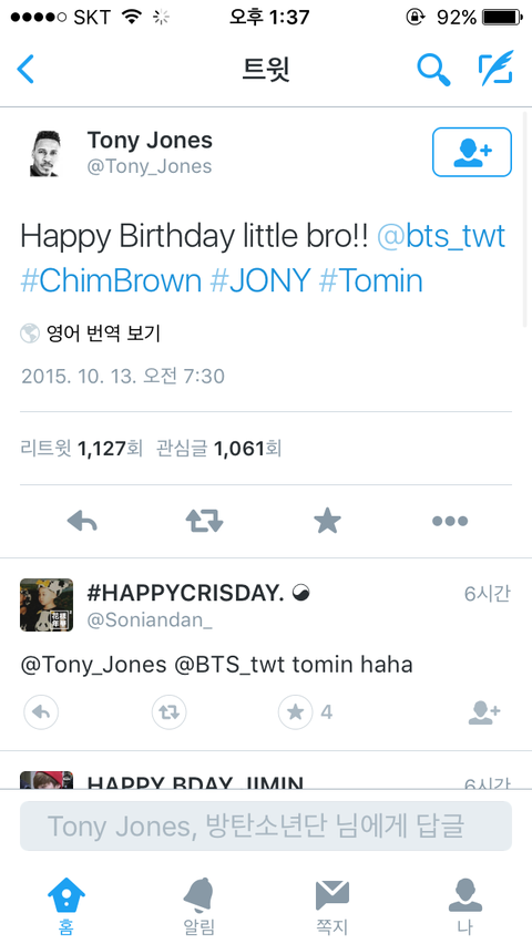 근데 오늘 짐니 생일이라고 요로콤 트윗을 올려줌ㅠㅠ