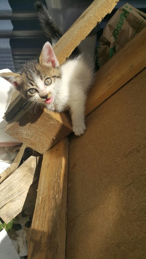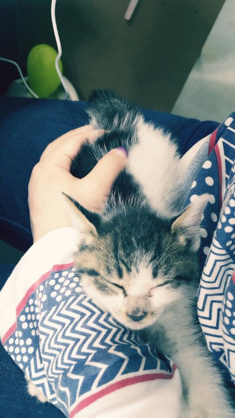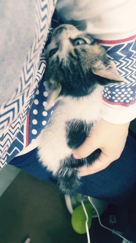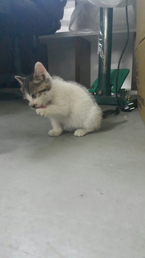생후 한달정도밖에 안되어보이는데 어미에게 버림받았지만 특유의 넉살로 여기저기 돌아다니며 사랑받고 있어요~ 애교도 너무 많고 똑똑해요~~