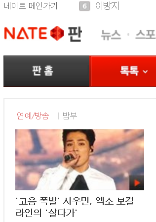 톡톡? 오늘의 판? ㅋ 암튼 거기 민석이 살다가 영상이 있더라구 언제 뜬건지 난 지금 봤네