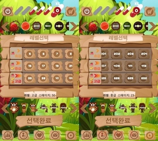 게임은 단순하지만, 상당히 많은 양의 스테이지를 제공한다. 스테이지 누적점수가 상단 먹거리 리스트 점수에 도달하면 캔디, 도넛 등의 새로운 음식이 열린다. 하단에 있는 주인공 동물 역시 먹거리리스트처럼 누적점수에 따라 차례로 오픈된다.