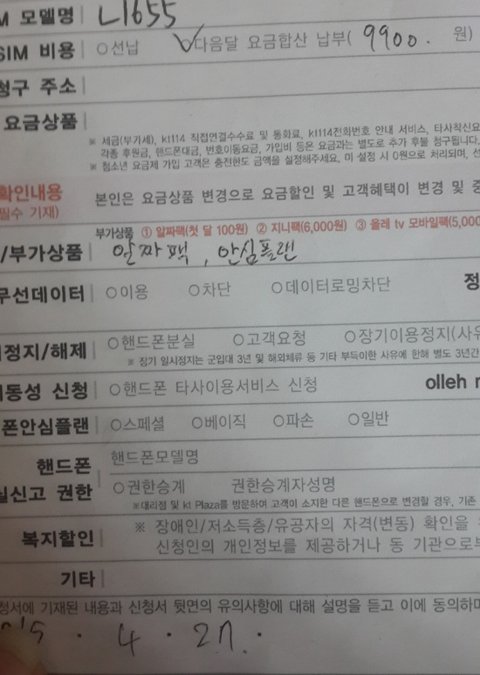 위에 계약서 보시면 4월에 개통해서 아직 몇개월 사용도 못했습니다.