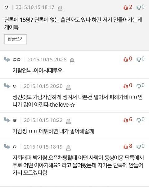 진짜 쟤네 별 지랄을 다떠는구나... 서로 모르는사인데도 동상이몽나왔다고 톡방까지만들어서 빽으로도 쓰니?ㅋㅋㅋㅋ