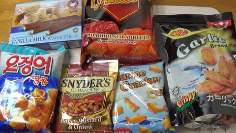 6종류 과자(프레첼+피아토스+갈릭브레드+오징어땅콩+마린크래커+와퍼스틱)를