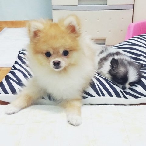 크림이도 엄청 작은편인데 슈 옆에있으니 애기사자같아요