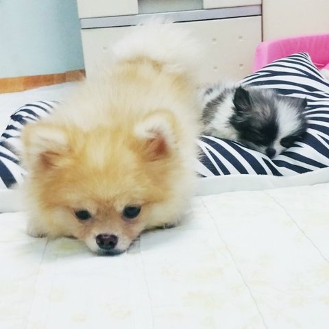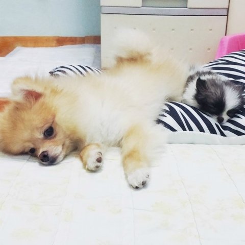 슈가 따라와서 괴롭혀서 크림이가 깼어요ㅎㅎㅎ