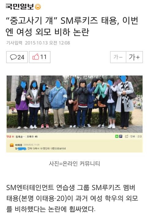 계속 SM에 남아 있는것 같은데 데뷔한 후에도 평생 주홍글씨로 까여도 할 말 없다.