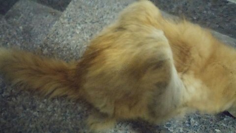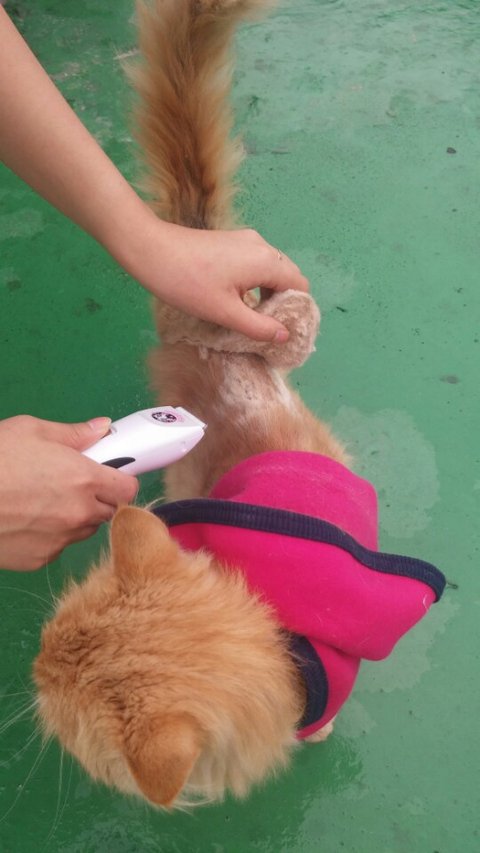 뭉친 털이 너무 아파 보이길래 급한대로 딱딱한 부분만 제거 해줬어요.