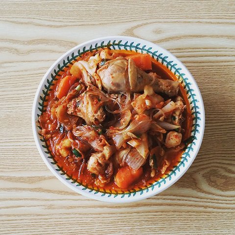 이렇게 돼지 갈비로 빨갛게 매운 갈비찜 만들어 보았습니다. 매콤한 거 땡길땐 아주 제격이예요!