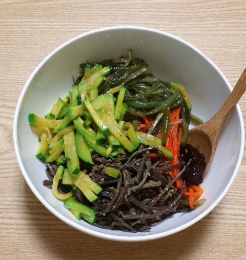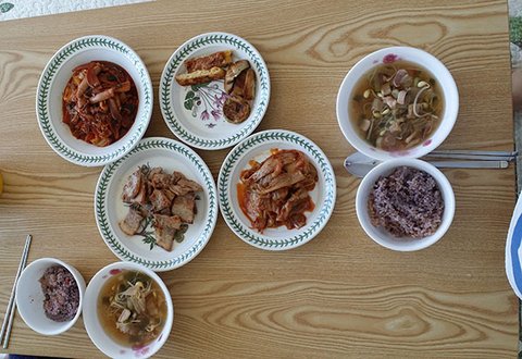 콩나물 무치고 미역줄기 볶고 손이 많이 가지만 그래도 이걸로 일주일은 거뜬히 버틸 수 있는