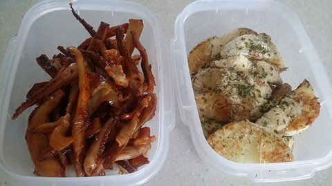 냉장고를 뒤지니 수제소세지와 크래미, 파프리카, 양파 그리고 엄마가 준 고구마 한박스가 있어