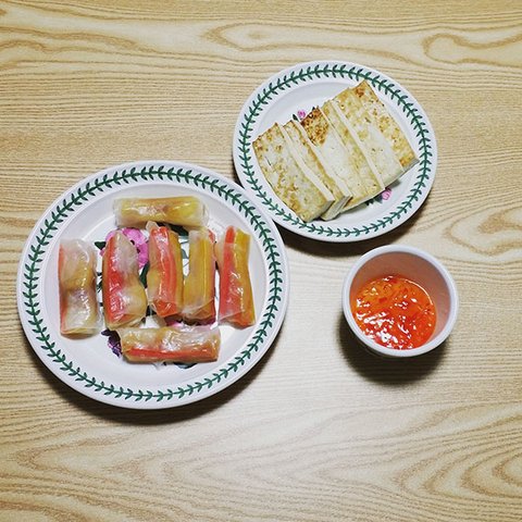 라이스페이퍼로 돌돌 싸고, 두부 구워서 간단하게 저녁해결했습니다.