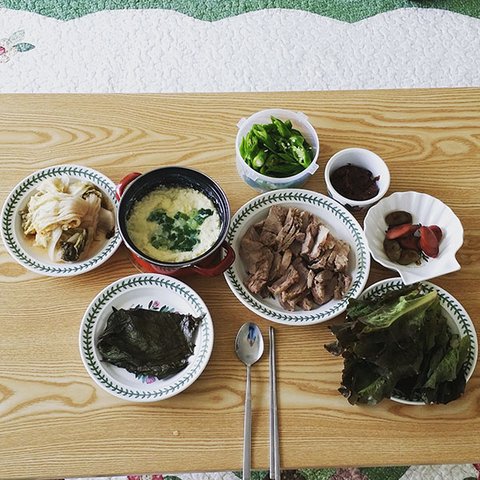 이렇게 한가득 보쌈상을 차려서 황제같은 아침을 먹었어요.