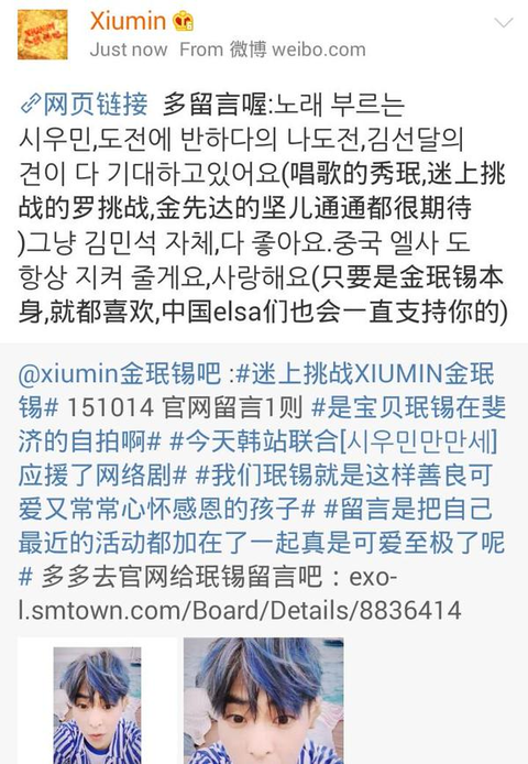 이거 봤어?중국 Xiumin Bar에서 시우민 연기 응원 댓글 달기를 팬보드에 하고 있나봐맘이 넘 예뻐서 감동