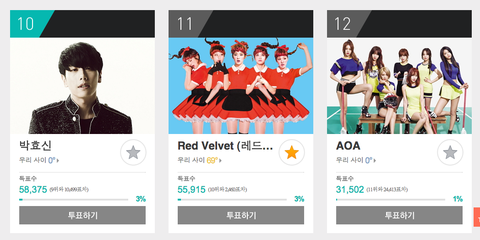 애들어저께만해도 TOP10이였는데... 오늘 11위.......애들이번년도꼭상받게하자!
