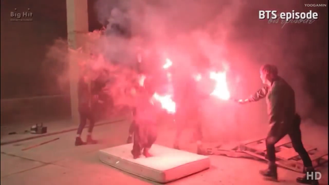 아니쥬 뮤비 메이킹보면 방탄이들이 불꽃들고 뛰는장면 메이킹이 나오는데 그때 방탄이들이 밟는게 침대 매트리스임 석진이가 매트리스 위에서 잠들었고 태형이도 매트리스 위에서 잠듬. 침대없이 매트리스 위에서. 매트리스 위에서 뛰는 행동은 대개 잠든 사람을 깨우기 위한 목적으로 하는 경우가 많음. 석진이와 태형이를 꿈에서 깨어나게 해 현실로 돌아가게 하려던 것이 아닐까.