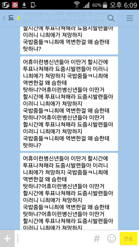 됴톡에 도배하지마