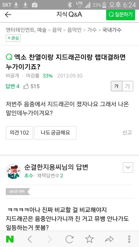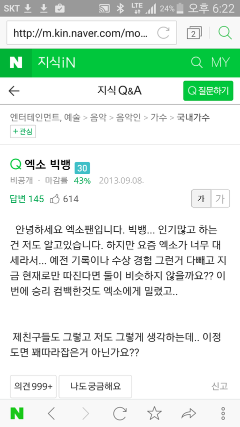 지식인은 올리면 삭제안되서 다행임ㅋㅋ