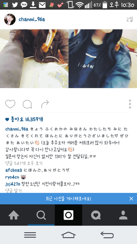 ㅇㅇㅇㅇㅇ나 방탄이나 힘들게 올라온애들이고 바쁠텐데 연애할시간은있으려나. 뭔 누가들었는데 오빠라했더라뭐나 누가들었다나뭐나 그런찌라시는 난애초에안믿음. 팬을얼마나끔찍하게사랑하고 절대걱정끼칠일벌일애 아닌거 당연우리는알아서 안믿는데 저런 끼워맞추기따위몇마디로 긴가민가 흔들리는아미 때문에 올려.