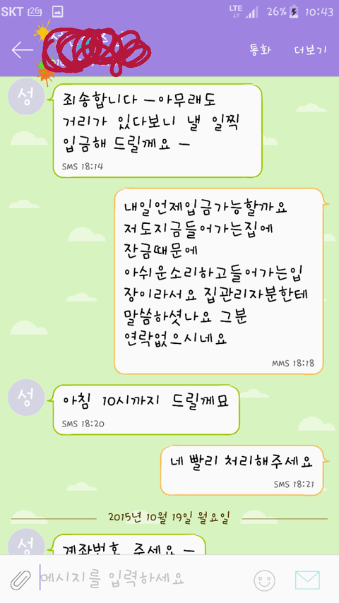 왜냐면 3일전에 제가 지로납부를 했거든요. 그래서 각각 청구비용 써서 보내달랫더니 묵묵부답이고 그래서 제가