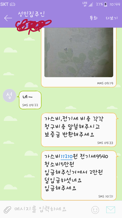 남겨놓았네요 저렇게 문자를 남겨도 묵묵부답이고 이사가는 그날까지도 부재중이엿답니다.보증금을 반환해줘야 이사를 가는곳에 잔금을 치룰수 있는데요