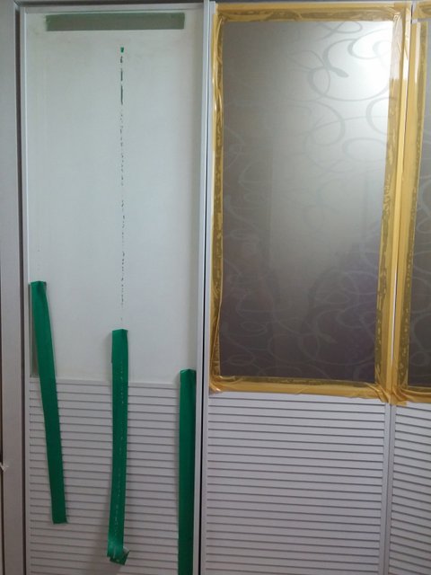 저런줄도 모르고 4년을 썼네요... 제일 위에 붙어 있는 청테이프 보이시죠? 저렇게 청테이프를 말아서 양면으로 하고 위에 하나랑 가운데 3개 붙여서 유리를 붙여놨어요