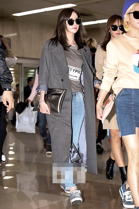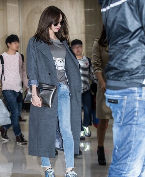 다리라인 드러나는 올세인츠 청바지에 굽 없는 운동화 신고 있어도