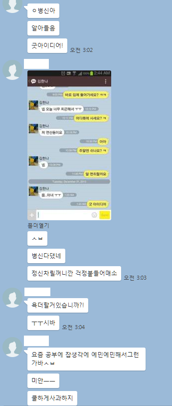얘가 카톡에서만 이러고 실제에선 아주 지극히 정상적인 ㅅㄲ입니다.