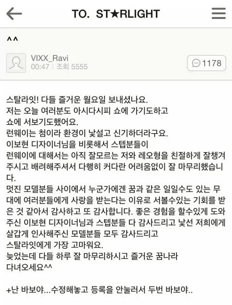 팬들끼리도 수니,빠순이를 쉽게 말하던 단어인데 저렇게 말해주니까 괜시리 감동받고 ..ㅠㅠ 판에서도 그렇고 유독 빅스에게 악플이나 안티가 자주보이는데 우리애들이 이렇게 마음씨 이쁜애들 이라고 알려드리고싶었어요 !