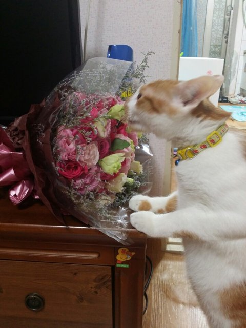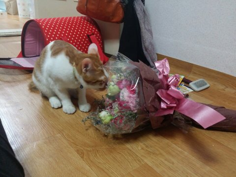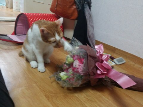 산이 꽃을 좋아할줄이야 나보다 더~ 좋아하는 냥이~