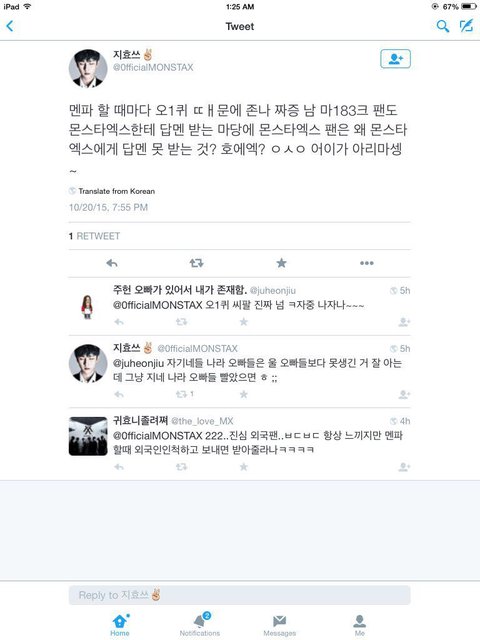 캡쳐에서는 몬스타엑스 팬님 쓰셨지만 다른 그룹에서 외국인 멤버 있잖아요... 인기도많아요... 갓세븐 보세요 헨리보세요 에프엑스 등등. 우리 외국인팬들은 자기나라 오빠들이 좋아하라고하면서 우리 나라의 오빠들은 멋있으면 잘생기면 다 좋아하시잖아요 우리 외국인 팬들은 다 꺼지라고하면 외국인 아이돌분들도 돌려주세요 그럼.