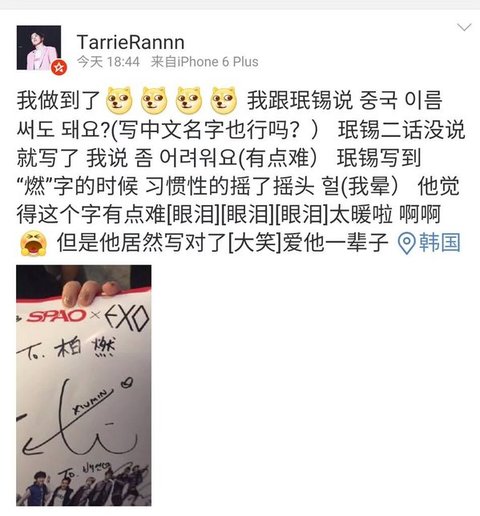 중국팬분이 이름말하니까 첨에는 어렵다고 하다가 맞게 써줬다고. ㅋㅋ