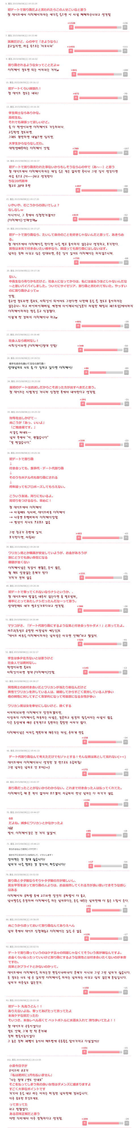 눈물나는 일본 커플의 데이트 비용 부담 비율