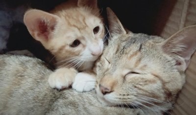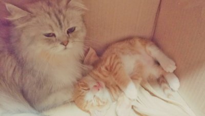 2주 정도 후 사진인데 애기가 지극정성으로 돌봐 다들 배가 통통하죠?