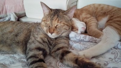 (사진은 남편이 자고 있는 위에서 잠든 귀여운 아가들 ♥)