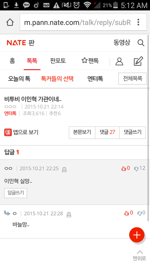 누가 민혁오빠 트위터 보고 빈정빈정대는 글이 톡선에 올라와있어서 봤는뎈ㅋㅋㅋㅋㅋ 댓글들이 다 웃곀ㅋ