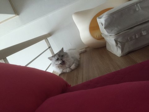 한참을 저러고 있다가 냥- 하더니 1층 내려와서 제 곁에 있어줬어요