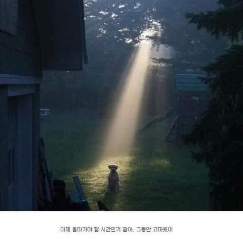 난 그 것도 슬프더라..주인이 나중에 죽으면 먼저 죽은 반려견이 마중나온다는 거