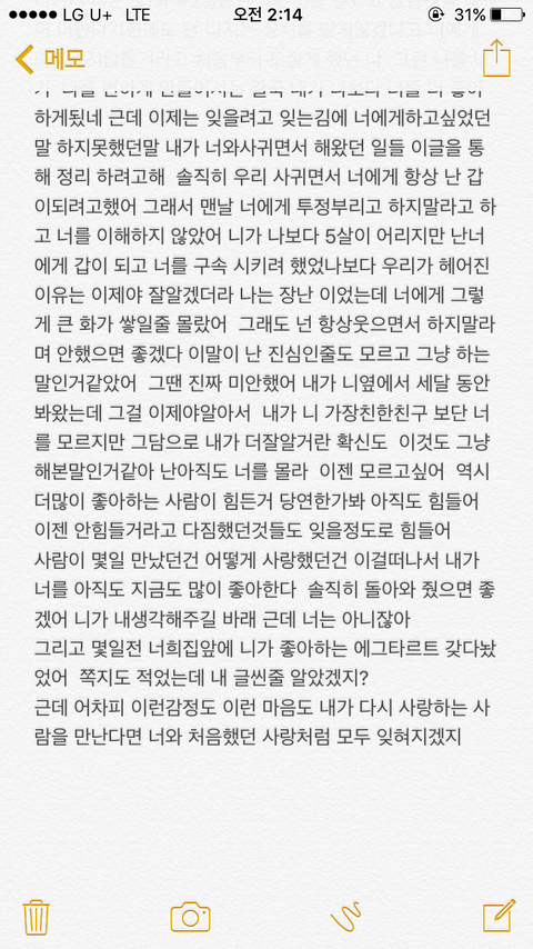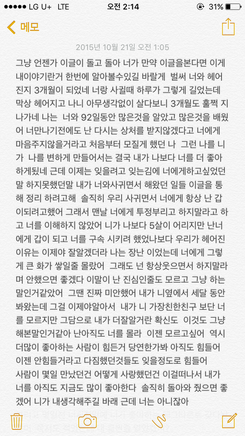이제 한달 지남 한번도 안잡아준 그사람이 너무나 미웠음 하지만 나는 나를 사랑하지 않는 사람을 놓친거지만 그사람은 자기자신을 사랑해..