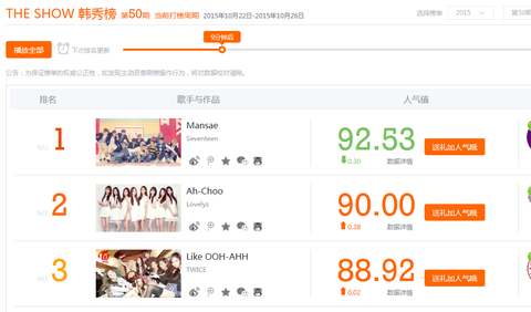 10/23 12시 현재 2위야! 좀만 더 하면 1위 충분히 올려! 저기 러블리즈 90.00 되어있는거 옆에 있는 주황색 버튼 누르면 바로 뮤비 볼수있어~중간에 끄면 안되구 저거 아츄 뮤비 다보면 다음가수인 트11와이스 분들 뮤비로 넘어가니까 뮤비 끝날때쯤 되면 다시 뮤비 보고 하는식으로 해줘 계속 가만히 두면 다른 가수분들 뮤비도 보게돼ㅜㅠㅠㅠㅡㅠㅜㅜㅜ