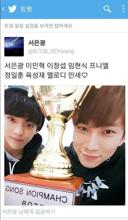 1위 소감말하면서 성재가 그날 없었는데 비투비 멤버중 누구였지 민혁이었나