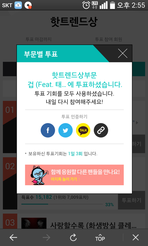+ 그리고 친구나 가족한테도 부탁해봐 나는 친구한테 투표하라고 전도함ㅋㅋ