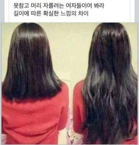 긴머리 관리가 더 어렵고 은근히 잘어울리기도 힘들어요. 일단 생머리가 잘어울리려면 여리여리한 분위기여야됨. 머리숱이 너무 많아도 안되고 머리카락이 너무 굵어도 안됨. 그리고 머리가 길수록 영양성분이 끝까지 가기 힘들기때문에 머릿결 관리가 힘듬. 거기다 긴머리 안어울리면 그냥 치렁치렁한 뮬란임.. 머리가 길수록 정수리부분에 볼륨이 사라지기 때문에 항상 정수리쪽에 볼륨 띄워줘야하고 그냥 쭉 펴진 쌩머리는 오히려 지저분해보일수가 있기 때문에 자연곱슬이 아니라면 어느정도 자연스러운 컬을 넣어줘야하지..무엇보다 머리 말리는데 30~40분씩 걸려서 고데기하려고 머리말리다보면 목에 디스크옴 ㅋㅋㅋ