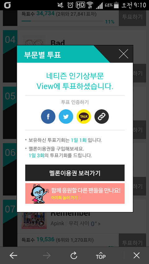 멜론 투표 또 시작했으니 다덜 투표를~~~하러 가요
