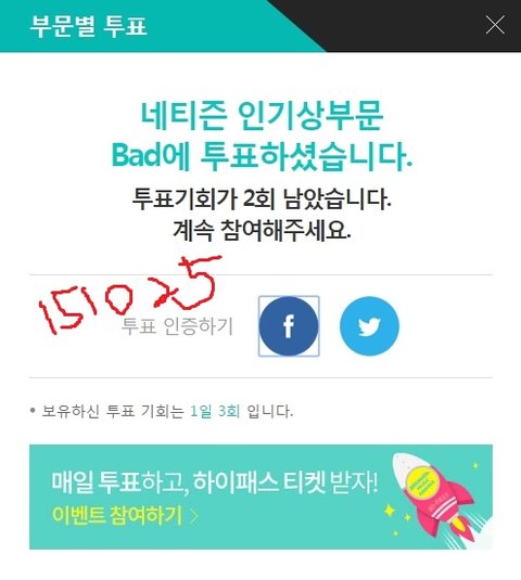 안녕하세요ㅎㅎ 저희 방탄이들한테 꾸준히 투표해주시는 인슾분이 계셔서 저도 투표했습니다! 굿밤되세요!!!!