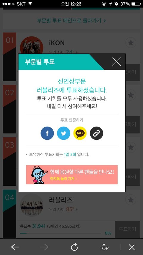 타팬인데 멜뮤 신인상 러블리즈 투표했어요!!