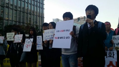 중딩들도 주말에 국정교과서 반대시위하는데