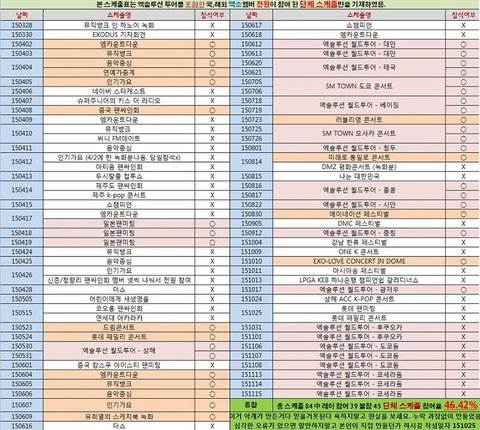 그리고 자꾸 9충이들이 라디오 같은건 일부만 나온 라디오까지 다 넣어놨다고 악의적인 표라고 주장하던데 저 표에 들어간 라디오들 다 단체스케줄이었다는^^ 클릭해서 보면 크게보임