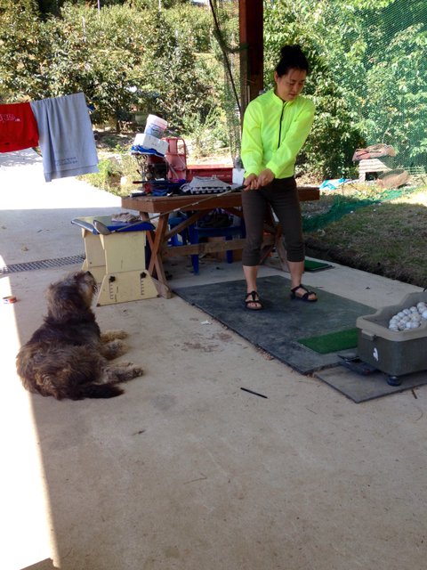 어느날 엄마가 골프치시는뎈ㅋㅋㅋ 골프채 안맞는 거리에 앉아 구경하고 있음 .....ㅋㅋ아슬아슬