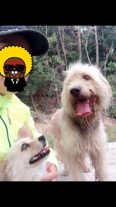 나또한 만득이가 너무 기특해서 만득이를 예뻐했음 ㅋㅋㅋ아침운동가려고 나왔는뎈ㅋㅋ 만득이와 사진을 한컷 찍으려고 하는데 메리와 쩜봉이갘ㅋㅋㅋ 서로 내 옆자리 차지하려고 싸움ㅌㅋㅋㅋㅋ
