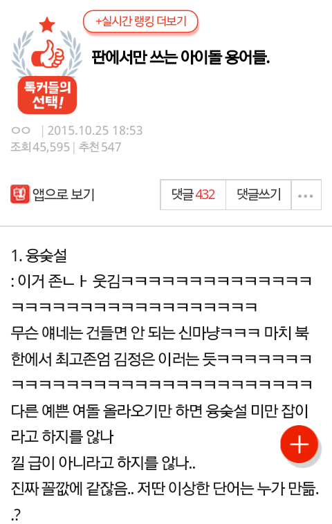 난 아무리 봐도 이글이 이렇게 추천 폭탄 받을 만한 글은 아닌것 같은데;